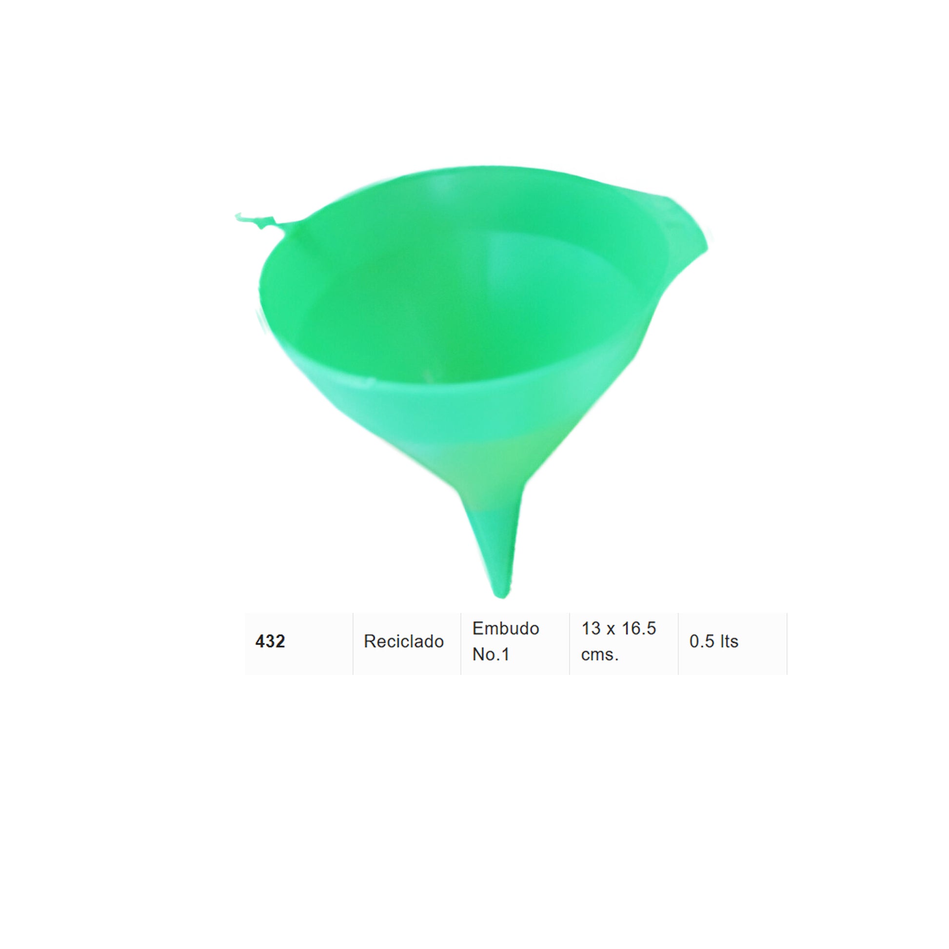 EMBUDO NO.1 DE MATERIAL RECICLADO DE 0.5LTS. - 13*16.5CMS