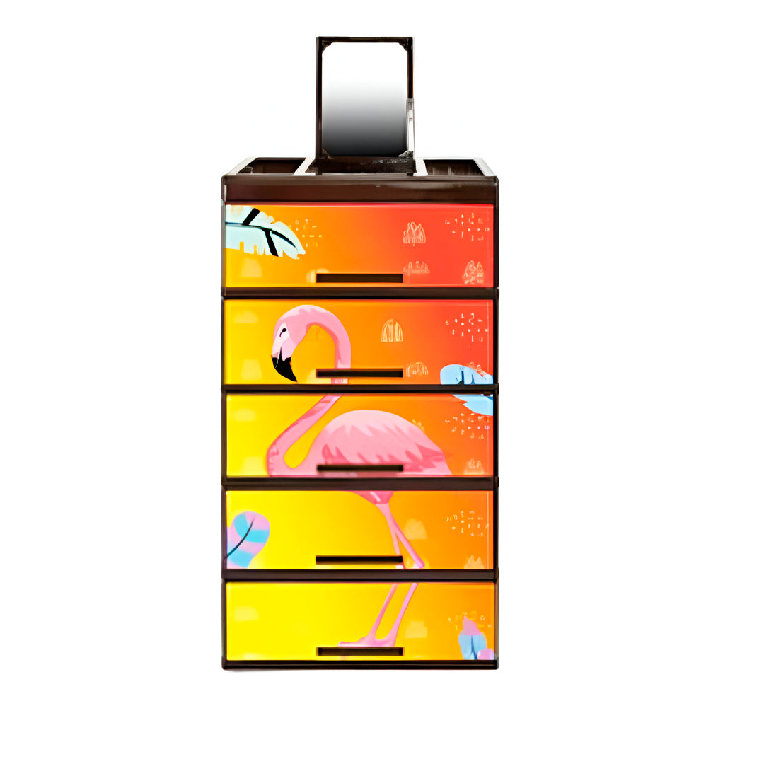 GAVETERO DE 5 NIVELES CON ESPEJO DISEÑO DE FLAMENCO.