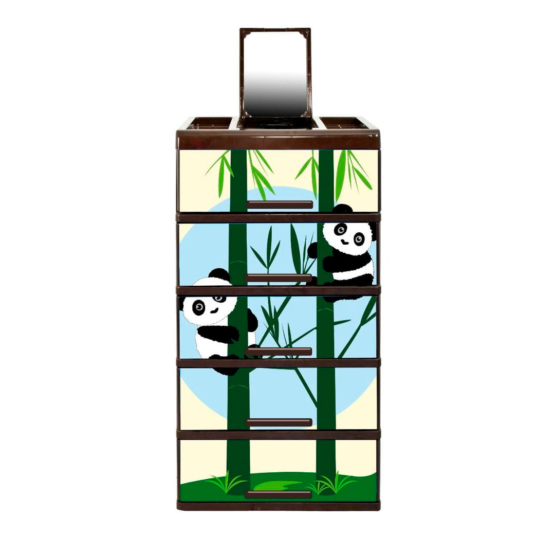 GAVETERO DE 5 NIVELES CON ESPEJO DISEÑO DE PANDA.